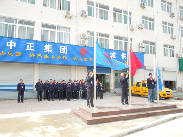 2012年4月28日,泰安市中正東城供熱有限公司辦公場所喬遷,現(xiàn)場進行了隆重的首次升國旗、司旗儀式。集團公司領導到場祝賀并對其現(xiàn)場環(huán)境整治情況進行了檢查驗收。